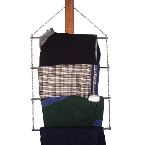 Blanket Rack Shiny chrome, four 23 3/4 Inch long rods and awfully handy. Saddle pads, blankets, towels, whatever will stay off the floor and easy to find. Looks great at the horse shows for displaying coolers ribbons etc. This item ships F.O.B. Actual shipping charges will be added to your order.- Chrome Plated Steel Tubing